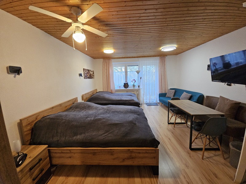Diese schöne nach Westen gerichtete Ferienwohnung im Erdgeschoss für 2-4 Personen verfügt über zwei Doppelbetten. Nach Westen ausgerichtete Terrasse mit Sicht Bäume. Außerdem gibt es eine kleine separate Küche und Bad mit Dusche und WC.